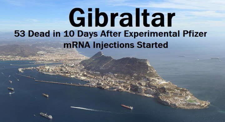 J’ai été contacté par des résidents de Gibraltar déclarant que 53 personnes sont mortes en 10 jours immédiatement après le lancement des injections d’ARNm COVID de Pfizer, et qualifiant cela de « massacre ».
