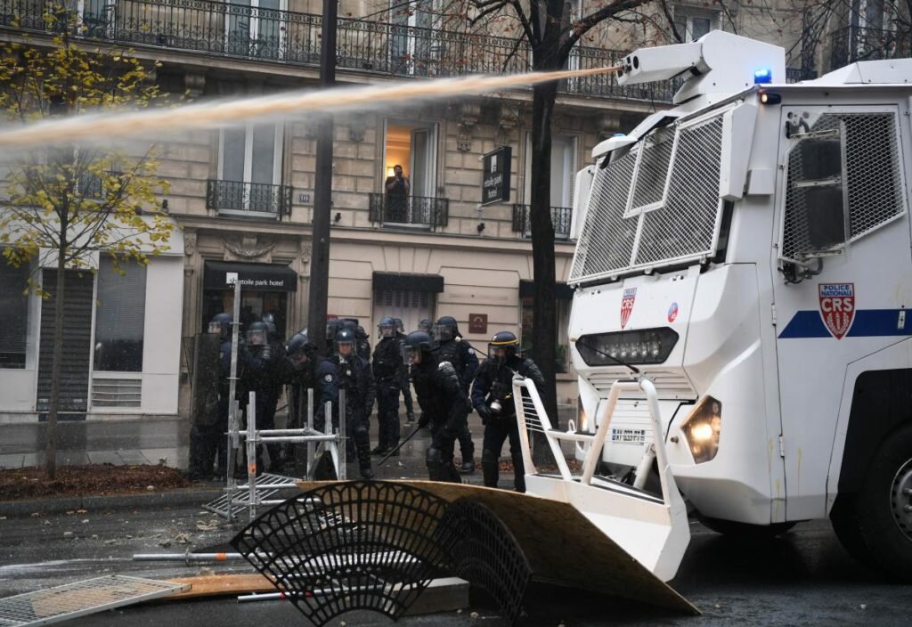 Alors que les manifestations continuent à Paris, et que les pompiers sont mobilisés exceptionnellement en très grand nombre dans les artères principales de la capitale, les affrontements eux-aussi reviennent de plus belle. On a pu recenser au total plus de 12 canon à eau déployés aujourd’hui, tout comme un important dispositif policier de plus de 300 hommes, dispersés dans le 12, 14 et 10 ème arrondissement de la capitale.